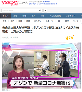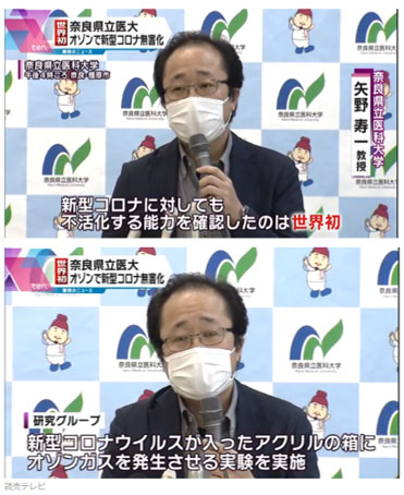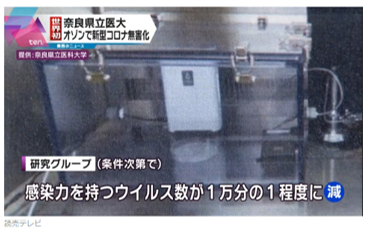 当店のオゾン発生器にて、「奈良県立医科大学病院」や 「藤田医科大学」村田貴之教授が人体に安全な低濃度オゾンガスで 新型コロナウイルスを不活性化できる事実を 世界で初めて発見しました。